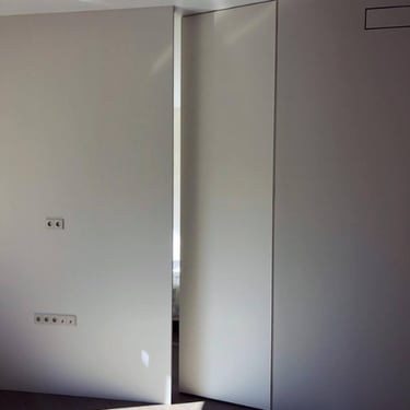 Zlicowanie ze ścianą: brak widocznych opasek i ukryta ościeżnica tworzą idealnie gładką powierzchnię.